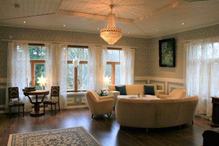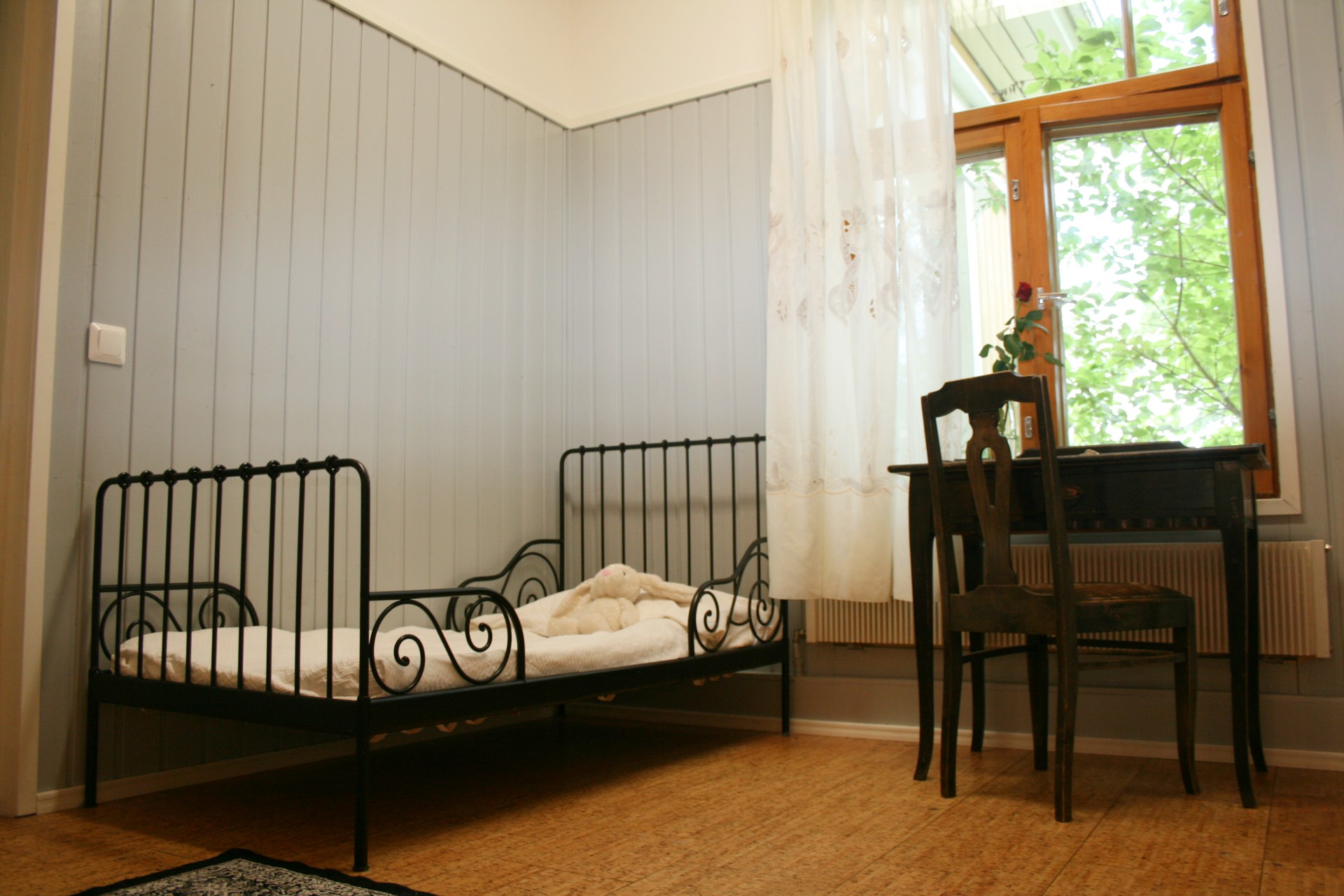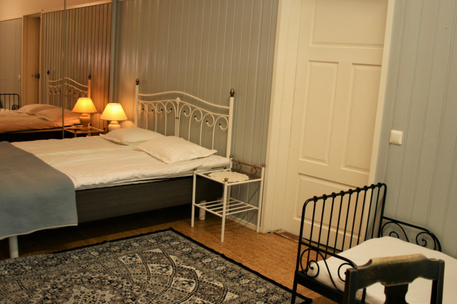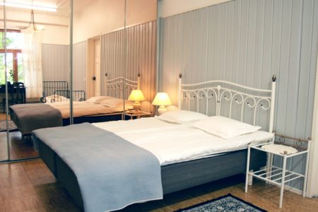 Villa Eerolan alakerrassa on sininen perhehuone, jossa koko perhe mahtuu yöpymään. Parisängyn lisäksi huoneeseen mahtuu jopa kaksi lasten sänkyä.